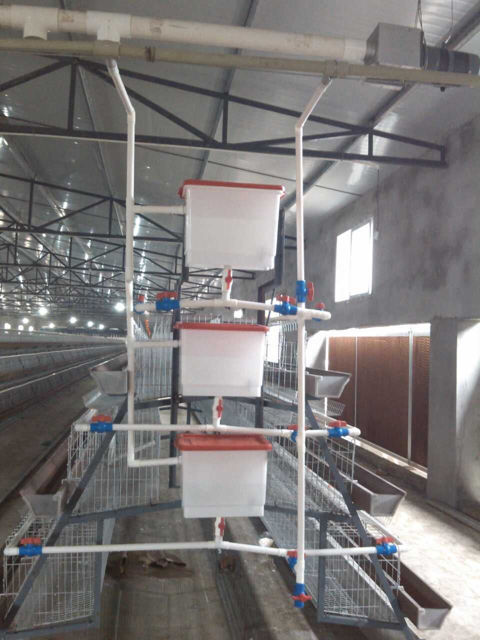 采用兩階段飼養(yǎng)工藝,單棟全進(jìn)全出模式,單棟育雛育成舍飼養(yǎng)規(guī)模為22500只,產(chǎn)蛋舍飼養(yǎng)規(guī)模為產(chǎn)蛋雞15000只。采用3層階梯式籠養(yǎng);乳頭飲水、階梯跨式帶自動喂料、濕簾降溫、縱向通風(fēng)、刮糞板機(jī)械清糞。場區(qū)消毒設(shè)施完備,配備高壓清洗消毒機(jī)、紫外線消毒燈,雞舍專用行車式噴霧消毒機(jī)等。污水處理采用化糞池處理后,用于農(nóng)田施肥,雞場自建堆肥場。病死雞處理采用全封閉化尸池發(fā)酵處理。該模式能夠滿足規(guī);半u生產(chǎn)要求,在這種模式下雞場環(huán)境整潔,雞舍空氣質(zhì)量較好,勞動效率高。